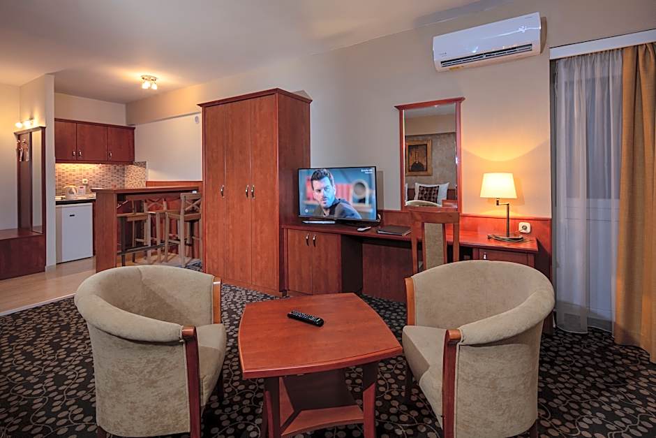 The air-conditioned, elegantly renovated studio consists of a room and a fully equipped kitchenette with a mini-bar in a single air-space. It also features a bathroom with a bathtub or shower and hairdryer, a modern LED TV with digital connection, a telephone and a safety deposit box.